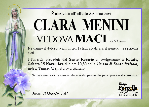 I familiari ringraziano anticipatamente tutti coloro che parteciperanno alla cerimonia funebre e tutti coloro che scriveranno con affetto un Pensiero di Ricordo.