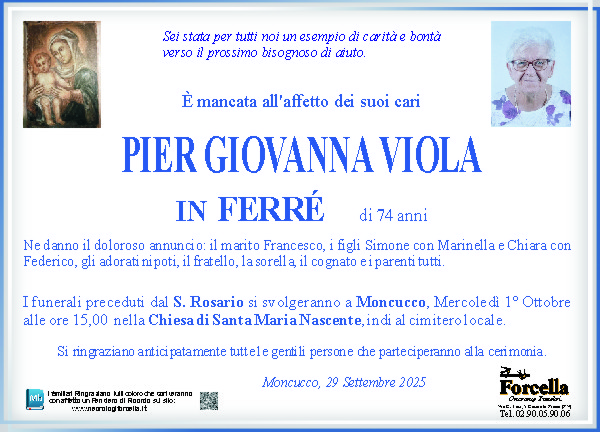 I familiari ringraziano anticipatamente tutti coloro che parteciperanno alla cerimonia funebre