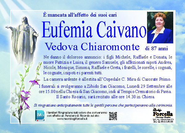 I familiari ringraziano anticipatamente tutti coloro che parteciperanno alla cerimonia funebre e tutti coloro che scriveranno con affetto un Pensiero di Ricordo.