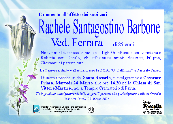 I familiari ringraziano anticipatamente tutti coloro che parteciperanno alla cerimonia funebre