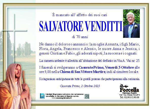 I familiari ringraziano anticipatamente tutti coloro che parteciperanno alla cerimonia funebre e tutti coloro che scriveranno con affetto un Pensiero di Ricordo.